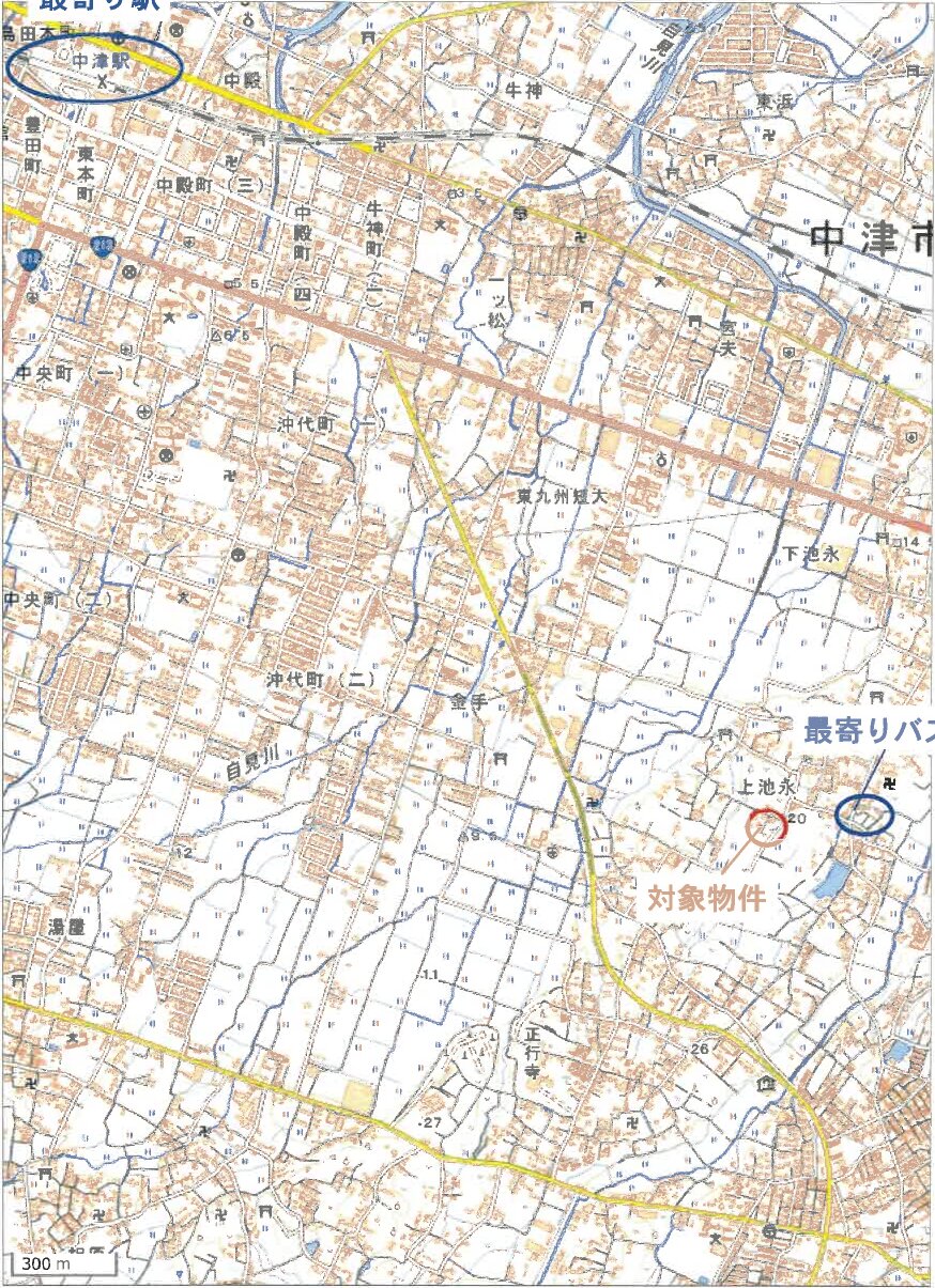 JR日豊本線「中津」駅 南東方 約3.4km (道路距離)