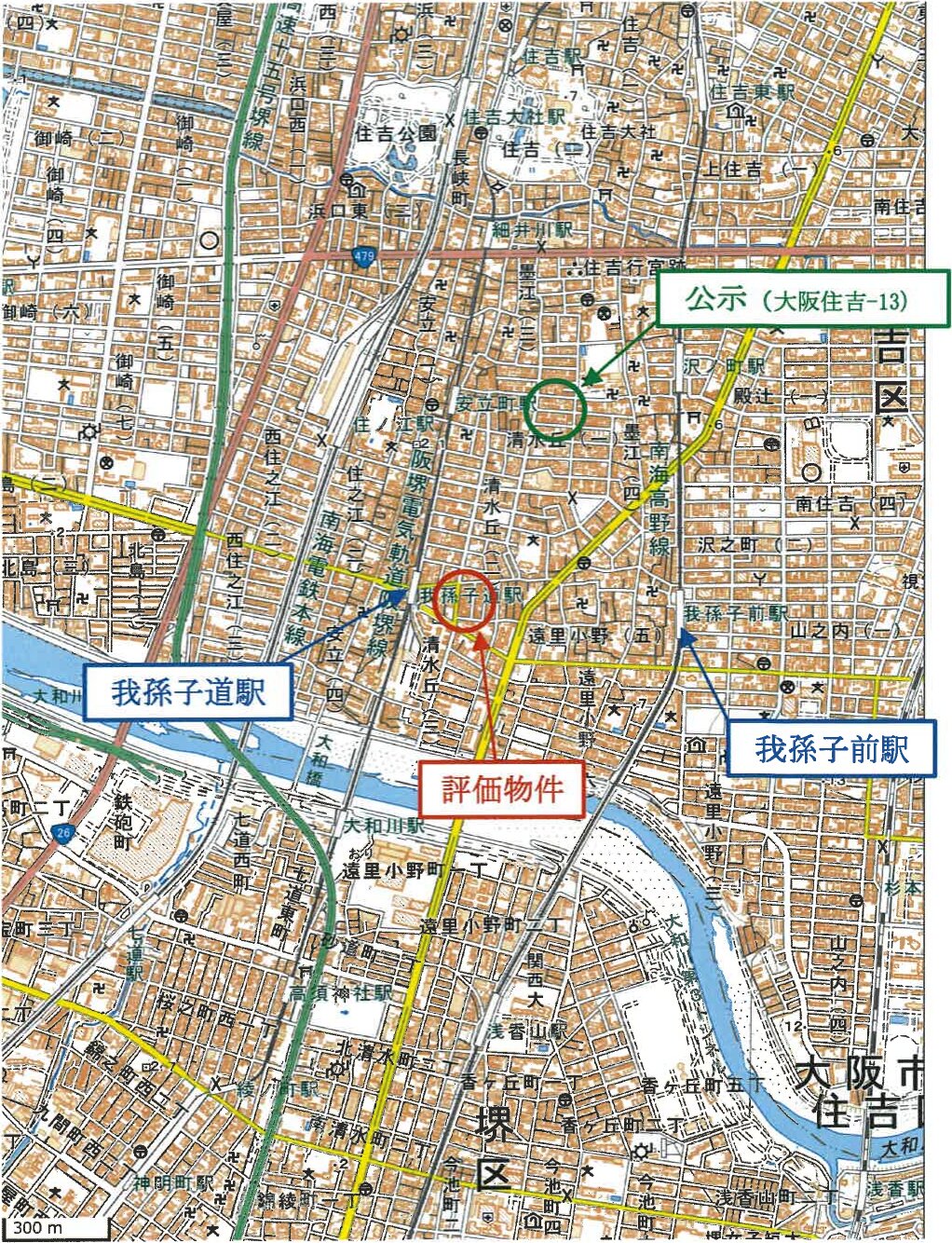 南海高野線「我孫子前」駅 西方 約700m (道路距離)