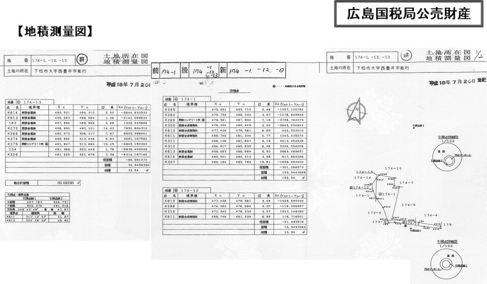 入札に際しては、広島国税局宛の入札書・下松市宛の入札書・条件付合同公売財産入札用計算書を組みにして、広島国税局に提出する必要がある。