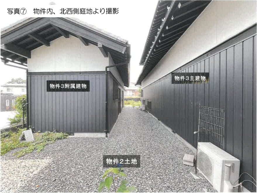 本詳細情報画面の内容については、必ず物件資料3点セット (物件明細書、現況調査報告書及び評価書等)をダウンロードの上、ご確認ください(民事執行法63条2項1号の申出がある場合等があります)。 本システムからダウンロードした「現況調査報告書」及び「評価書」に引用されている写真、資料及び図面は、本システム上は添付されていない場合があります。