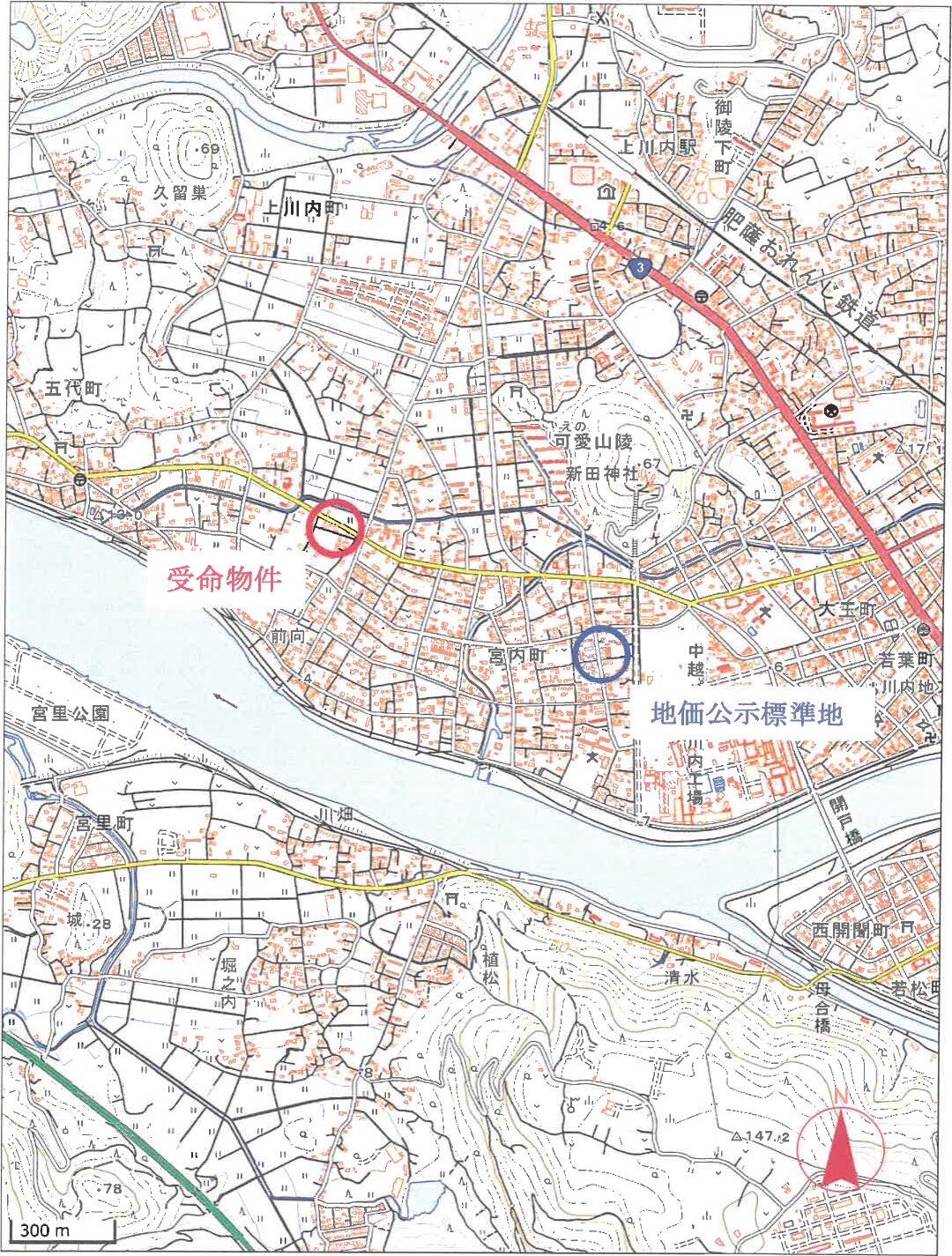 肥薩おれんじ鉄道「上川内」駅 南西方 約1.3km (直線距離)