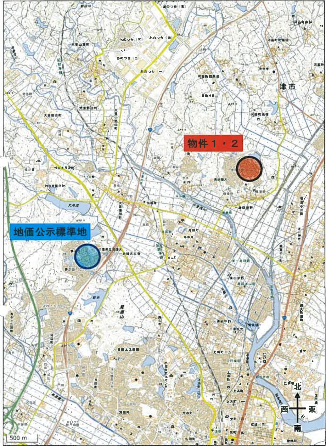 JR紀勢本線「一身田」駅 北東方 約1.8km (直線)
