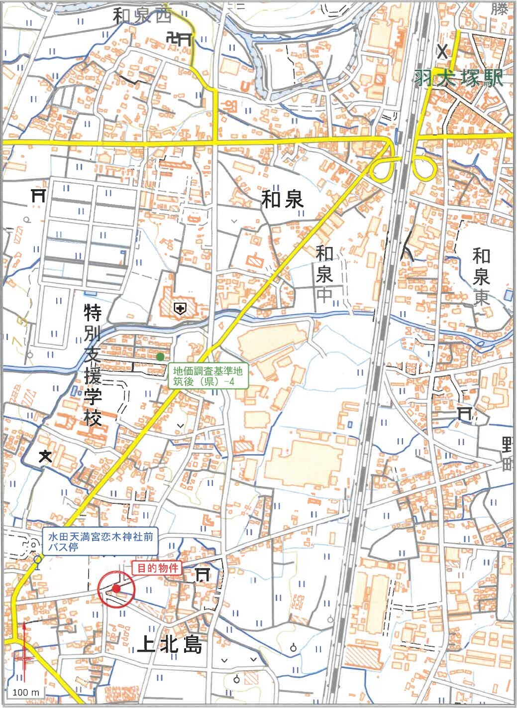 JR鹿児島本線「羽犬塚」駅 南西方 約1.5km (直線距離)