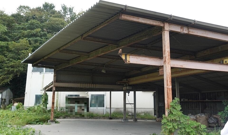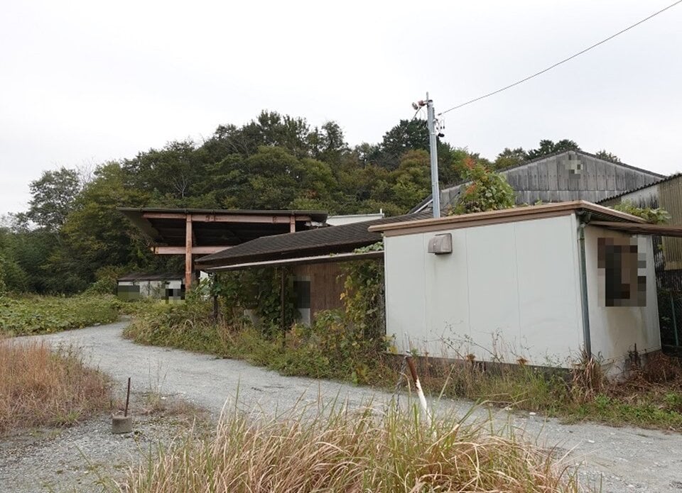 ・公売財産2上には、所有者不明のクレーン付資材置場、簡易物置、簡易トイレなどがある。