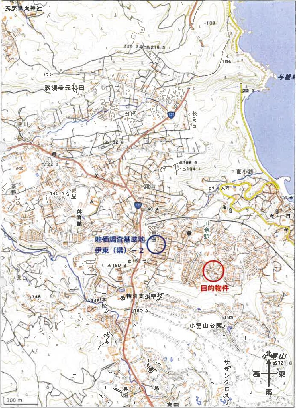 伊豆急行線「川奈」駅 概ね南方 直線距離 約500m