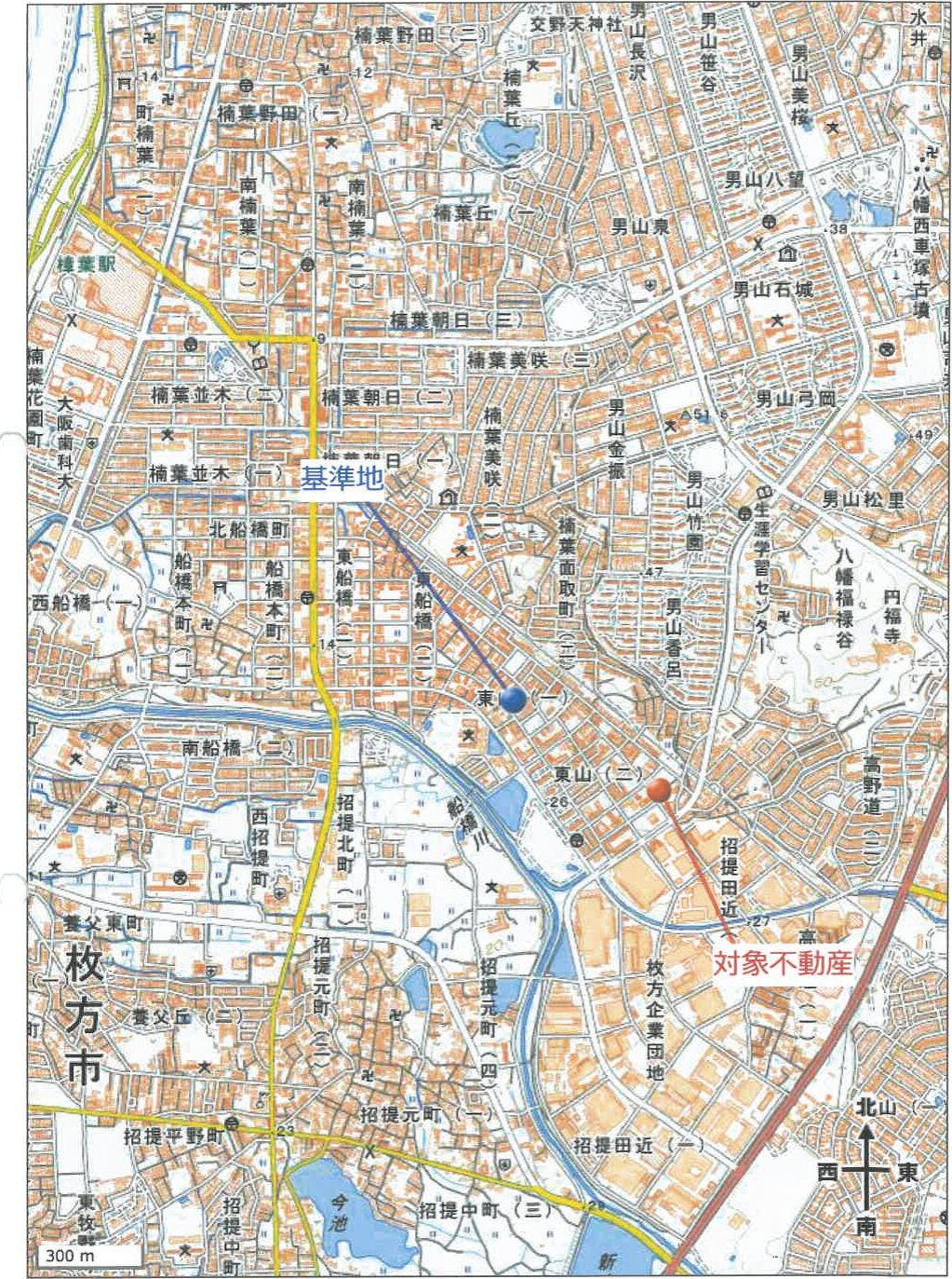 京阪本線 樟葉駅 南東方 道路距離 約2,750m