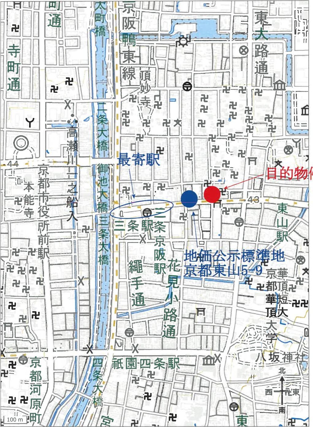 地下鉄東西線「三条京阪」駅 東方 道路距離 約200m