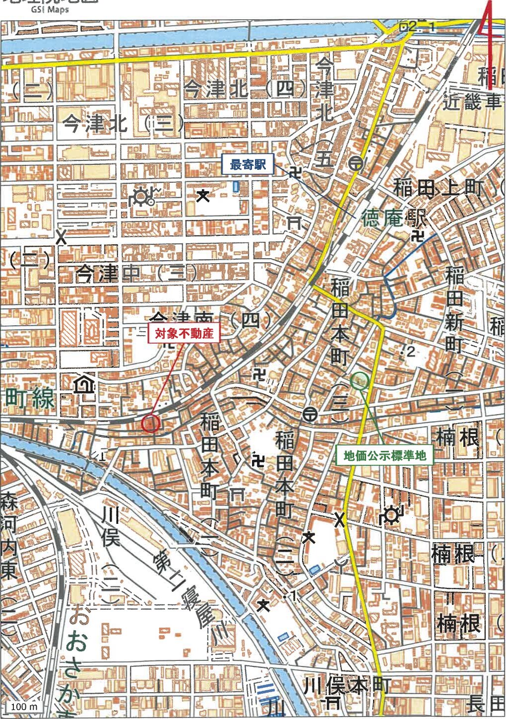 JR片町線 徳庵駅 南西方 道路距離 約850m