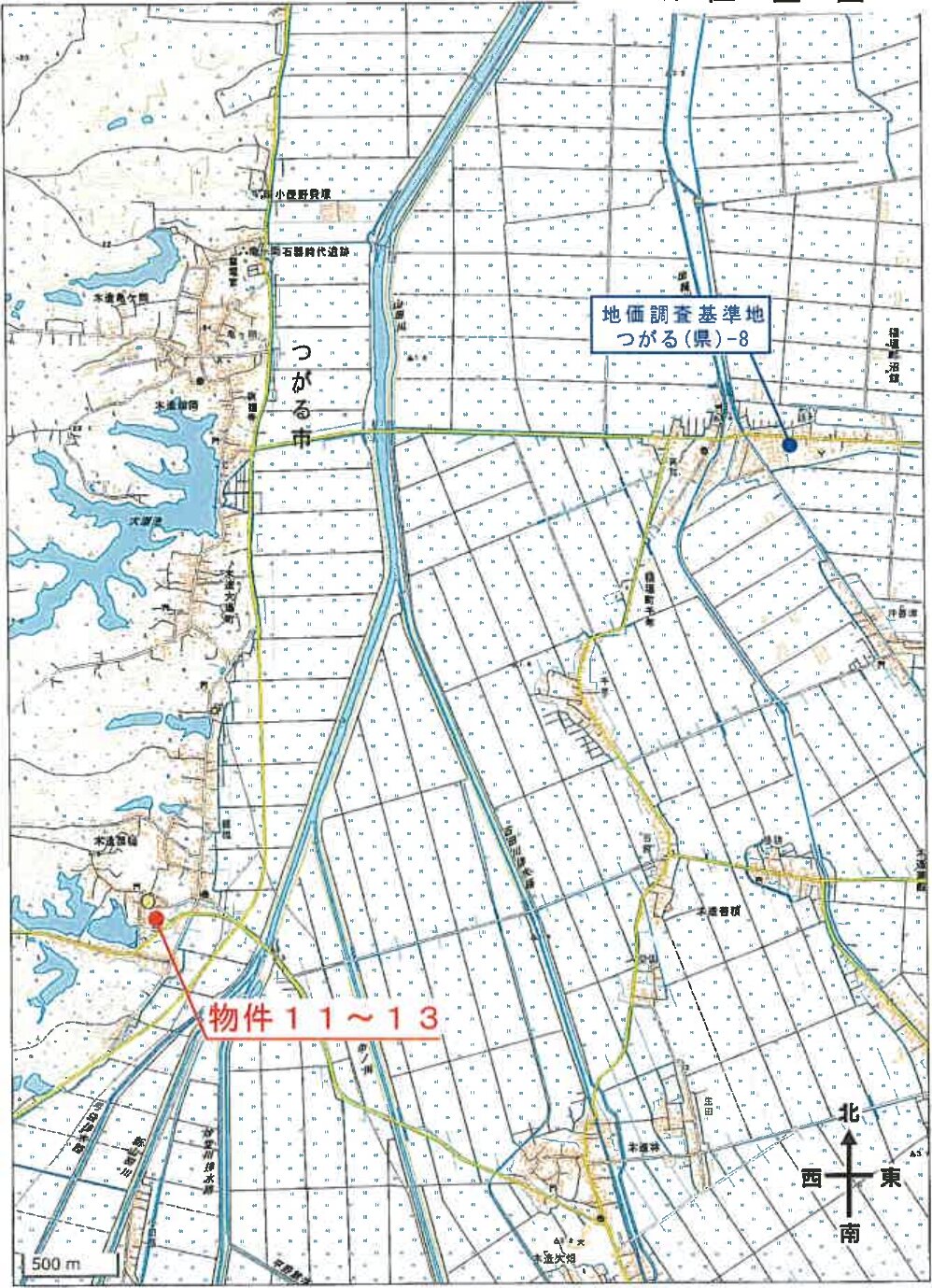 JR五能線「木造」駅 北西方 約7.9km (道路距離)
