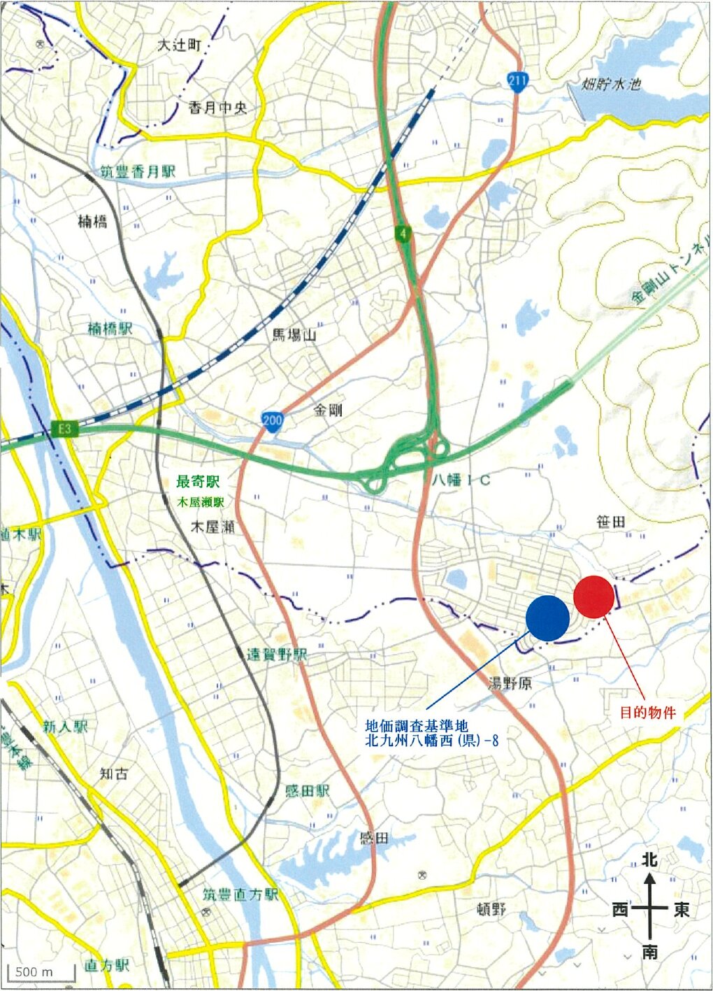 筑豊電鉄「木屋瀬」駅 東方 約3.15km (直線距離)