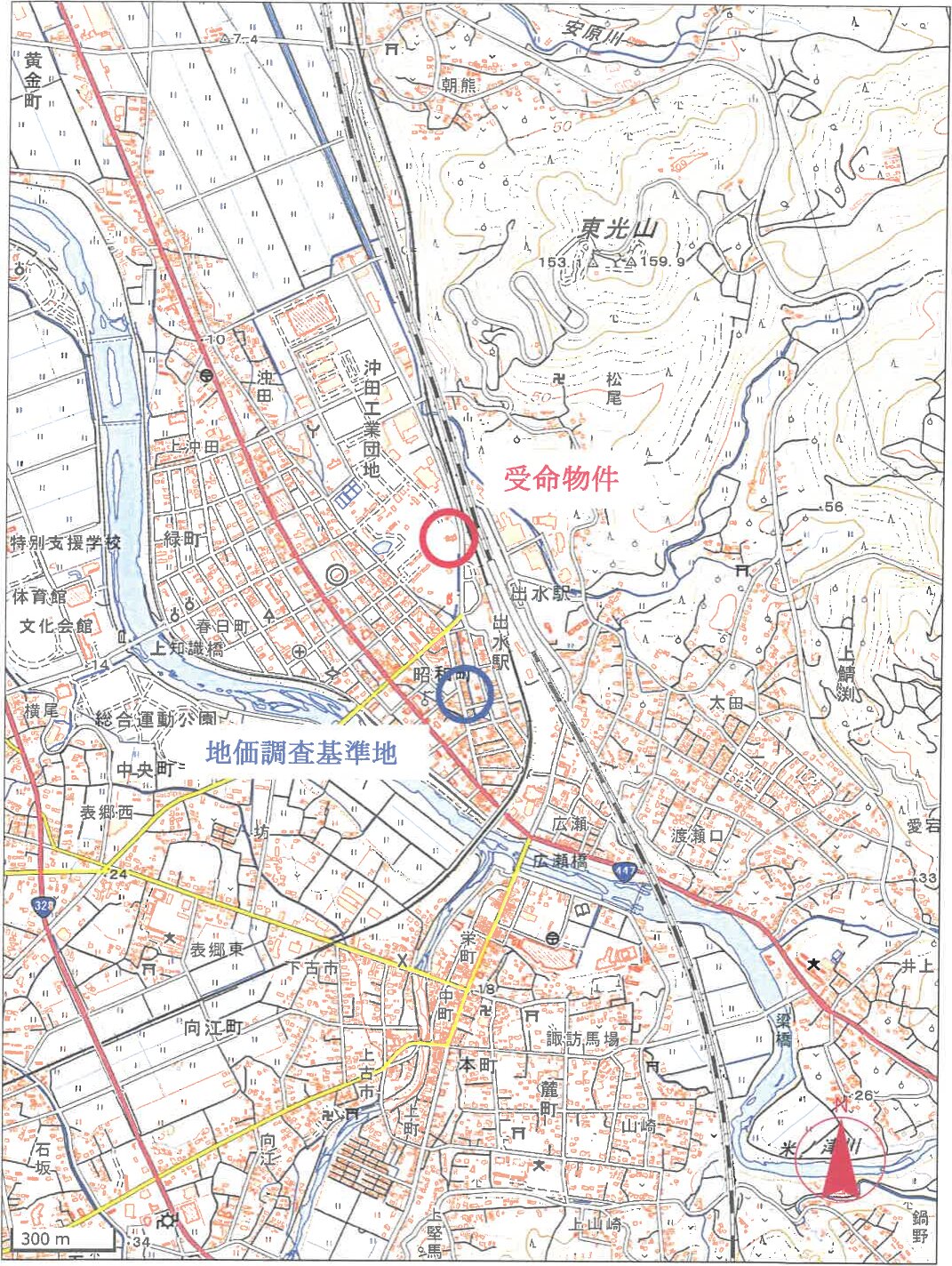 肥薩おれんじ鉄道「出水」駅 北西方 約250m (直線距離)