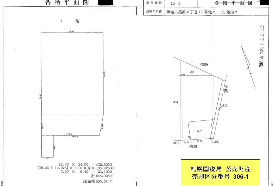 出典:国税庁ホームページ - (306-1 北海道函館市) 土地付建物詳細 | 公売情報