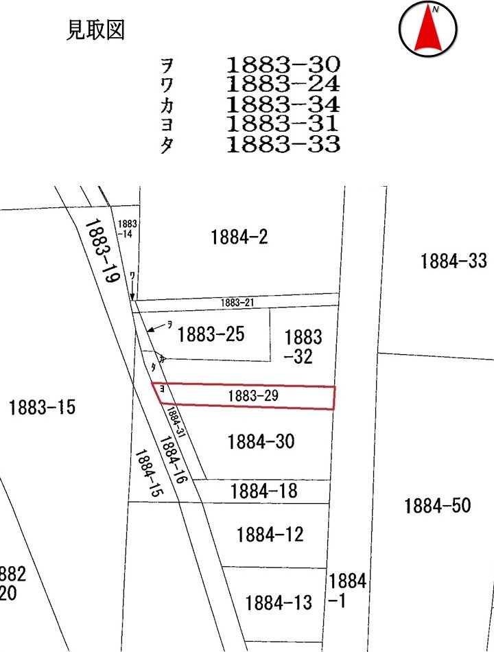 隣接地 (1884番30) にまたがる物置あり