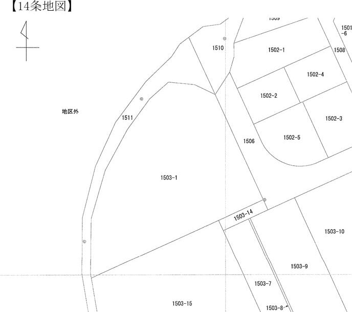 形状:略扇形状の角地で、画地内は平坦です。