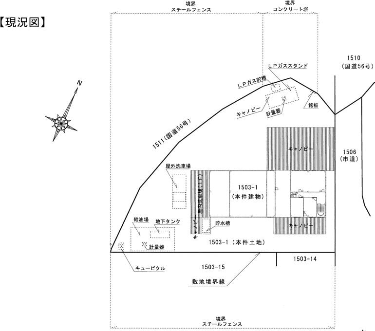 ススタンドのキャノピーがあります。これらは土地の定着物として公売財産に含ま