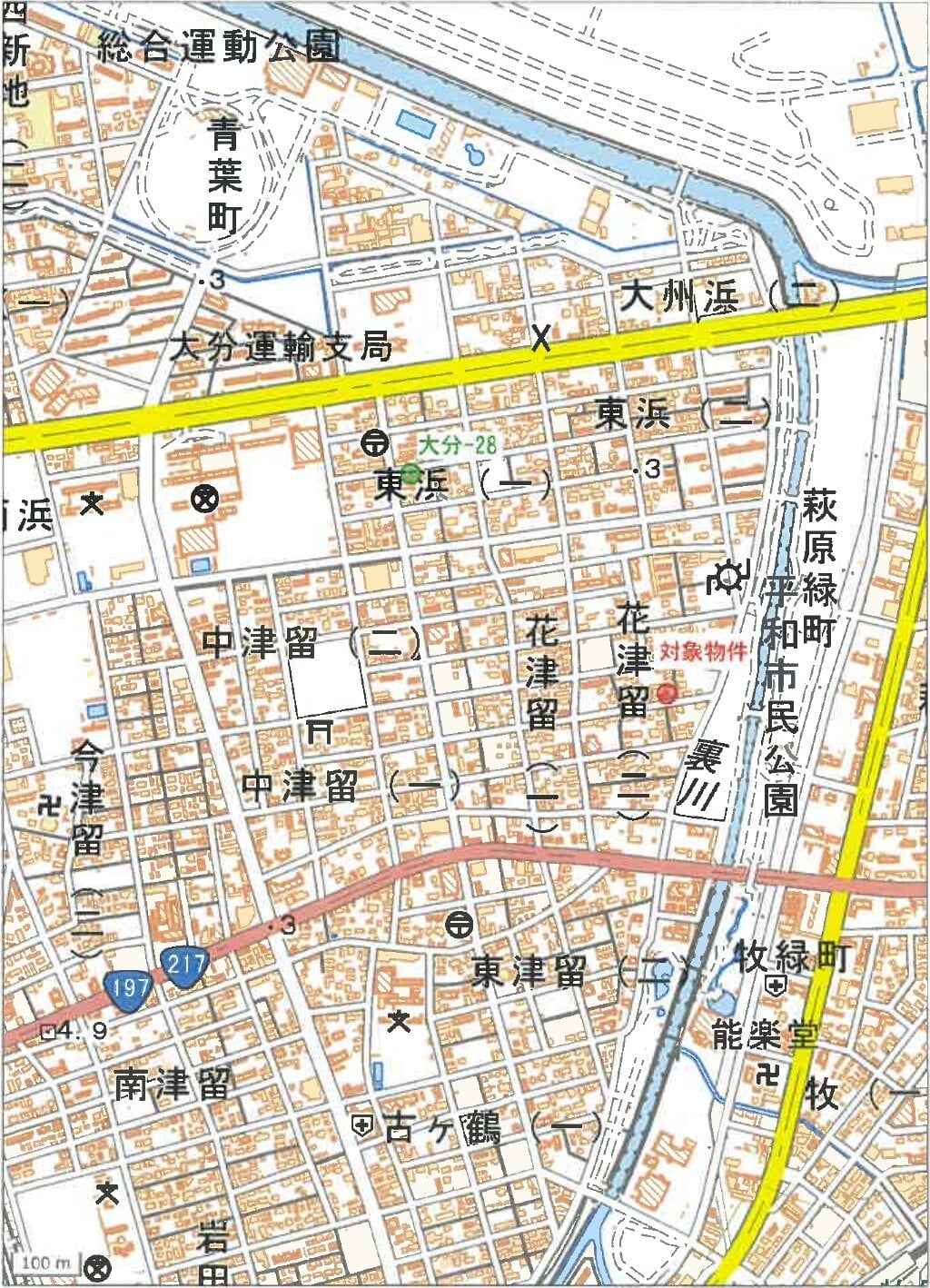 JR日豊本線「牧」駅 北西方 道路距離 約1.3km