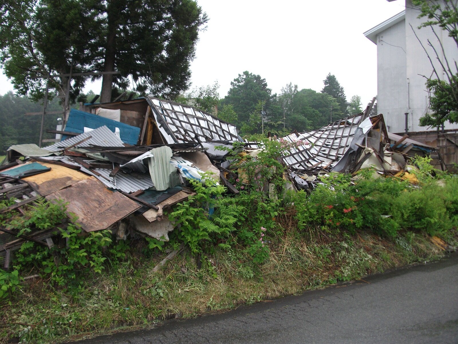 ・建物の南西隅と南東隅の2箇所に鉄骨プレハブの建物を建て、本件建物とつなげている。これらは登記がされておらず、建築確認の有無も確認できない。また固定資産税課税明細書にも反映されていない。
