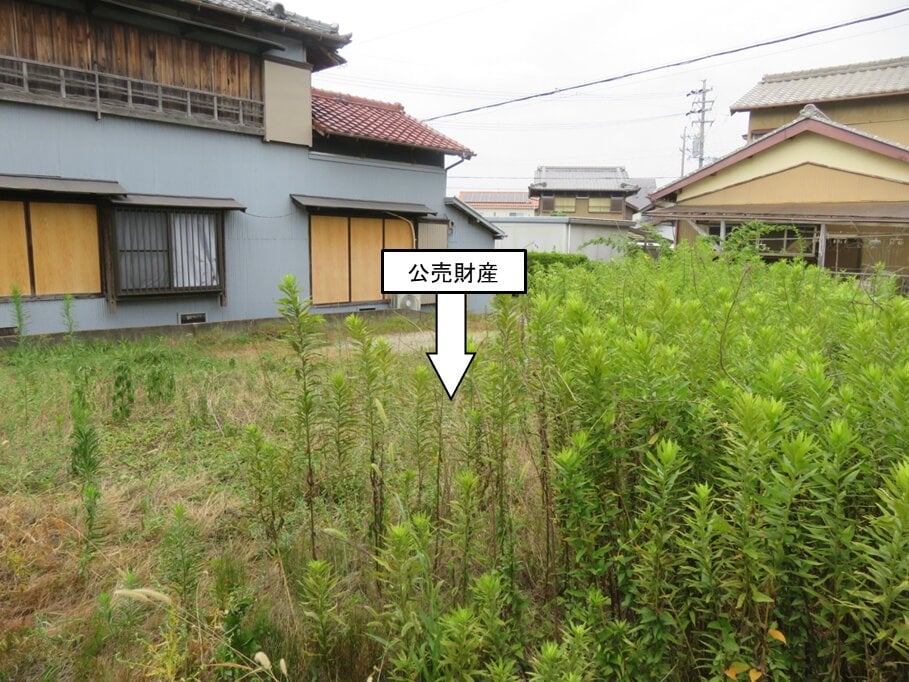 公売財産は北西側で市道 (幅員約3m・舗装) に接し、若干のセットバックを要する。(建築基準法第42条第2項)