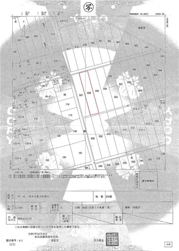 出典:官公庁オークション - 農地(田:宮城県登米市南方町照井506番)※買受適格証明書の提出が必要です。:登米市のインターネット公売物件詳細