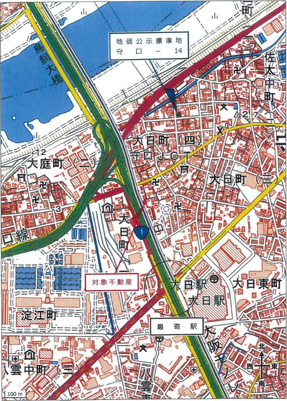 大阪メトロ谷町線 大日駅 ほぼ北方 道路距離 約500m