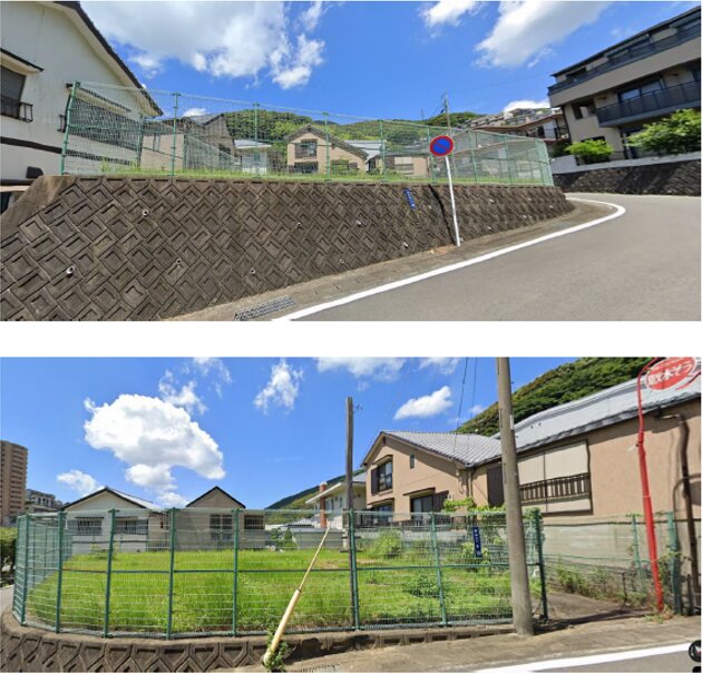 2. 対象地は接面道路から1.5m〜2.5mの高さに位置します。出入り可能箇所がないため、買主が設置工事を行う必要があります。