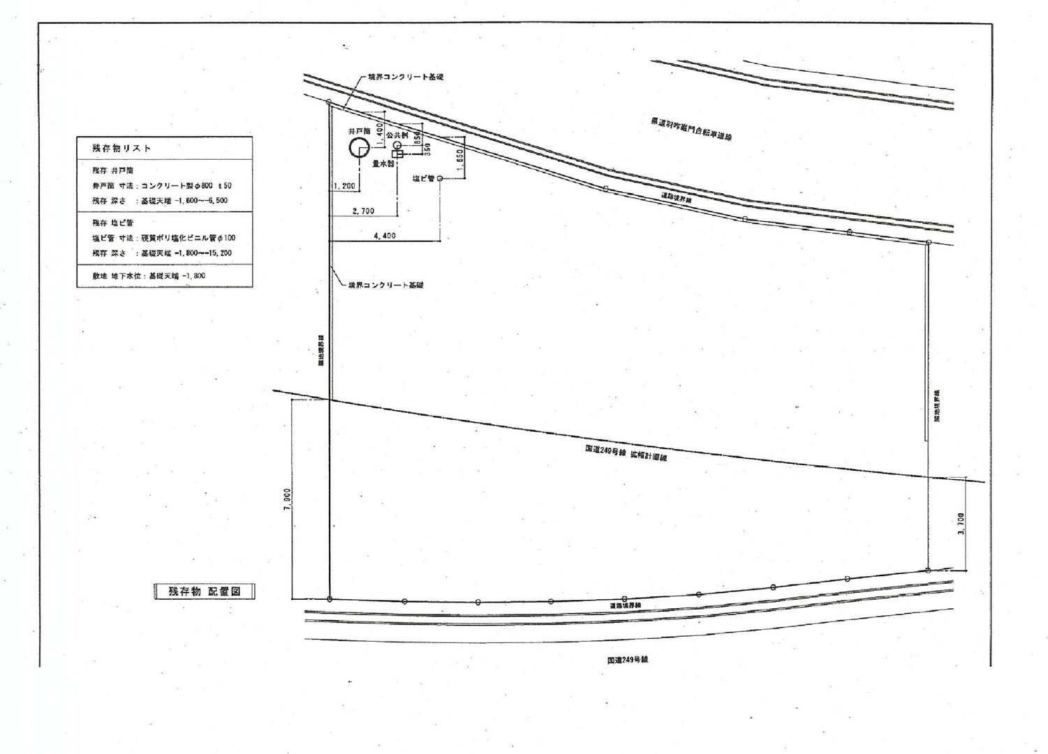 地下埋設物 (井戸筒及び塩ビ管) があります。