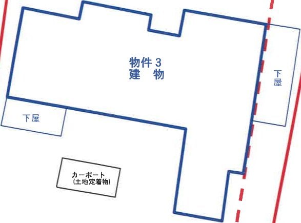 本詳細情報画面の内容については、必ず物件資料3点セット (物件明細書、現況調査報告書及び評価書等)をダウンロードの上、ご確認ください(民事執行法63条2項1号の申出がある場合等があります)。 本システムからダウンロードした「現況調査報告書」及び「評価書」に引用されている写真、資料及び図面は、本システム上は添付されていない場合があります。