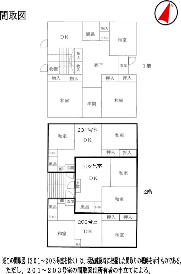 201号室 所有者の申立てによると第三者に賃貸