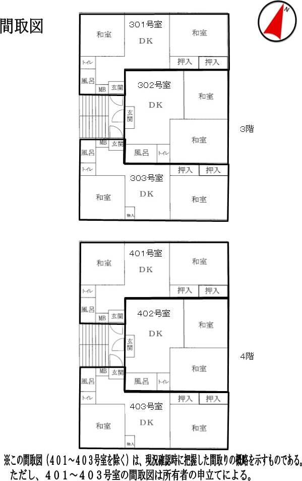 401、403号室 所有者の申立てによると過去に独居死あり