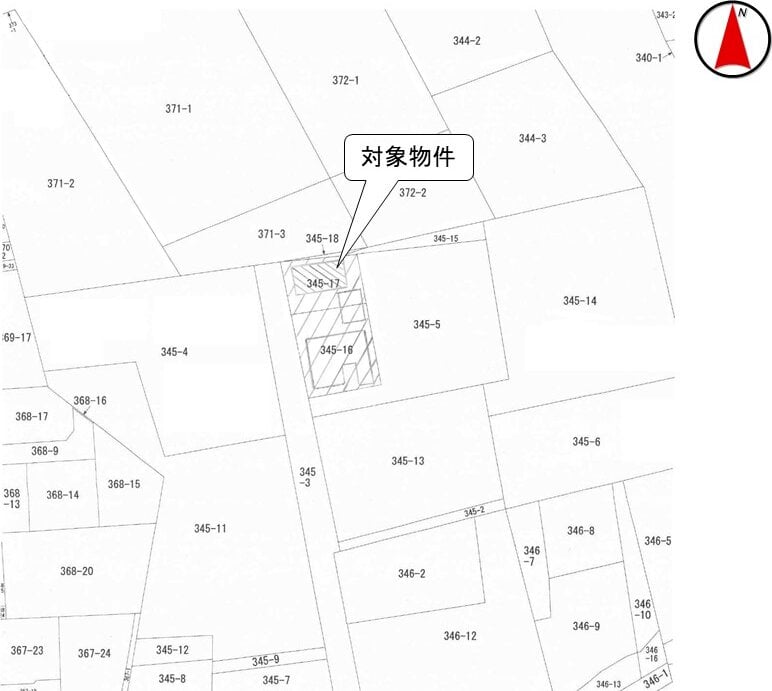 物件所有者の親族が所有する件外登記物件 (家屋番号345番16) の敷地として使用されています。