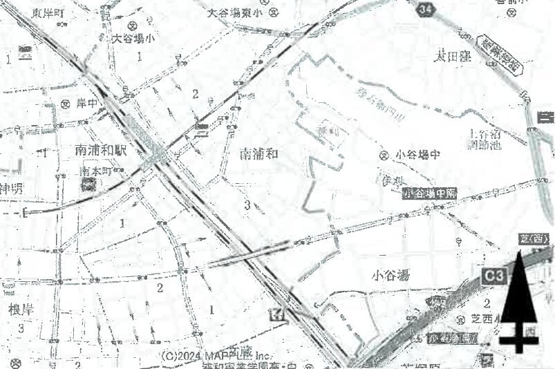 JR武蔵野線 南浦和駅 北東方 1.85km