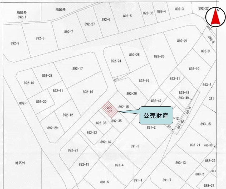 公売財産1は、間口約5.7メートル、奥行き約8.9メートルのほぼ長方形状の画地であり、地勢はほぼ平たんである。