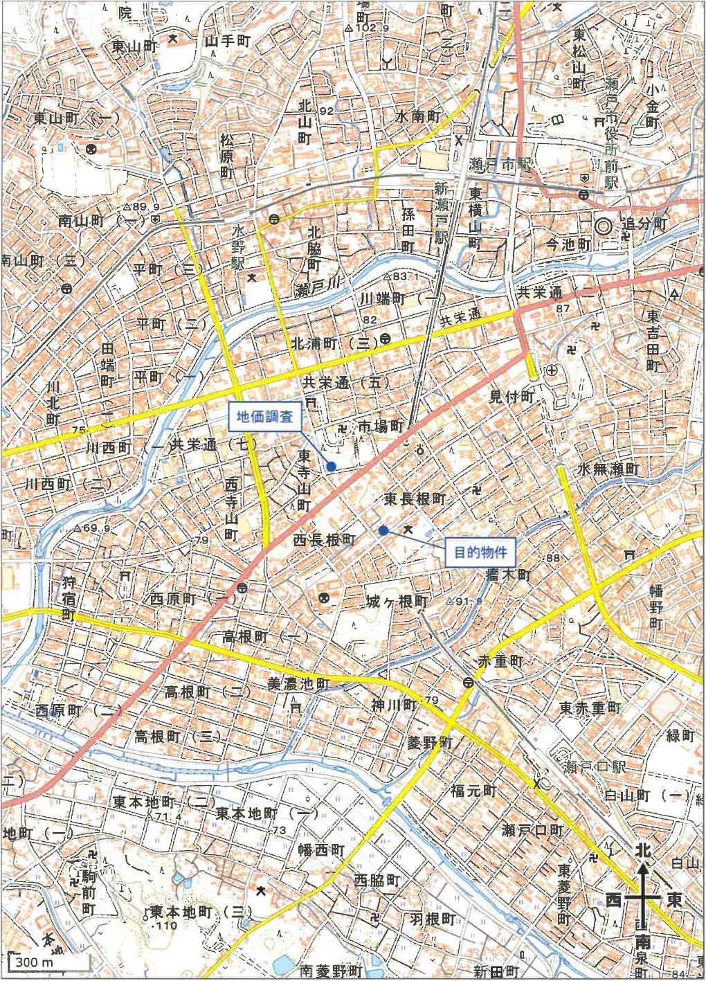 名鉄瀬戸線「」駅 南方 道路距離 約1.6km