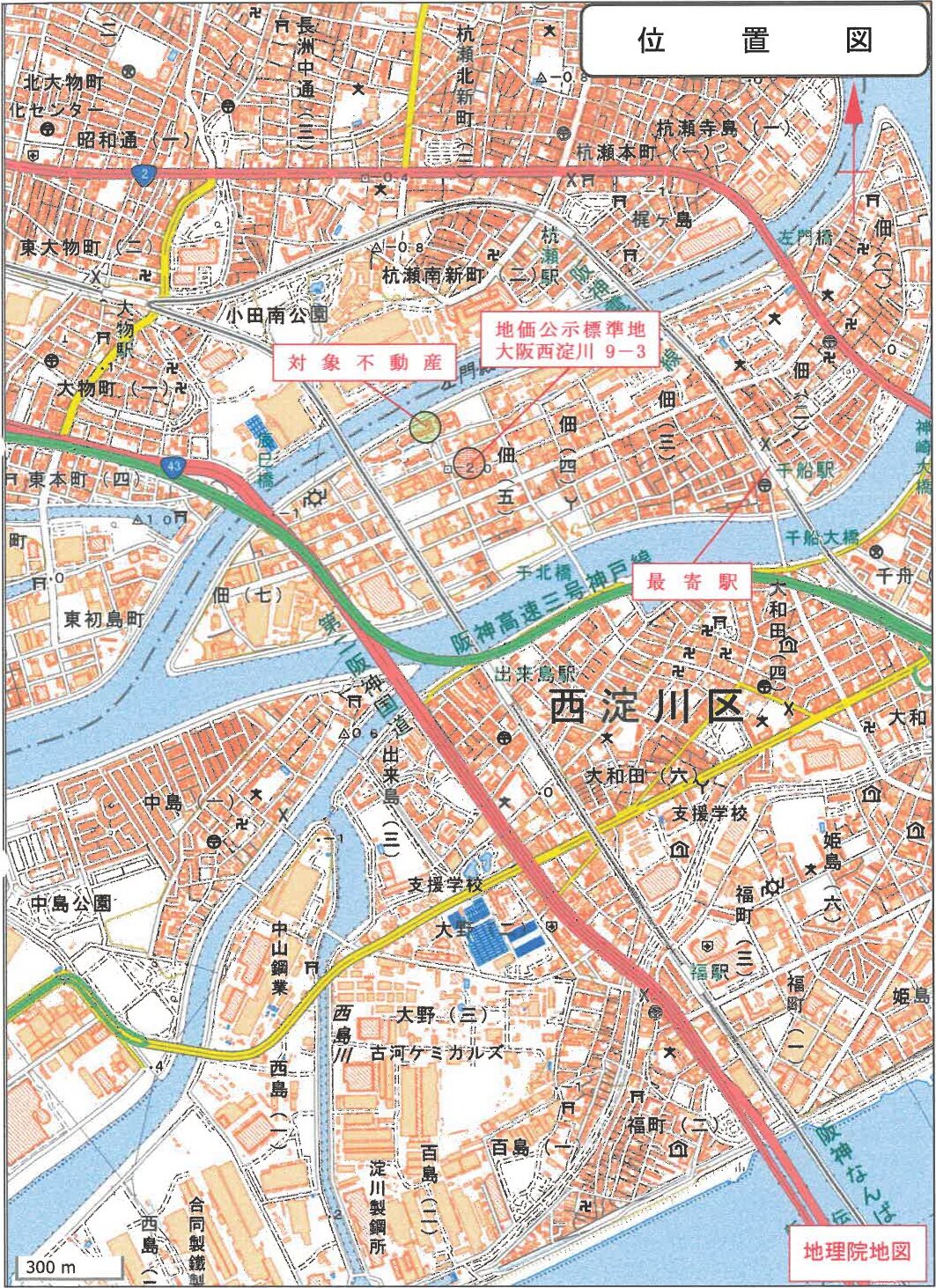 阪神本線 北西方 道路距離 約1,200m