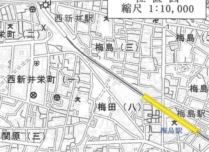 東武大師線 西新井駅 南方 1.36km