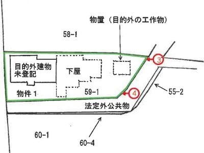 本詳細情報画面の内容については、必ず物件資料3点セット (物件明細書、現況調査報告書及び評価書等)をダウンロードの上、ご確認ください(民事執行法63条2項1号の申出がある場合等があります)。 本システムからダウンロードした「現況調査報告書」及び「評価書」に引用されている写真、資料及び図面は、本システム上は添付されていない場合があります。