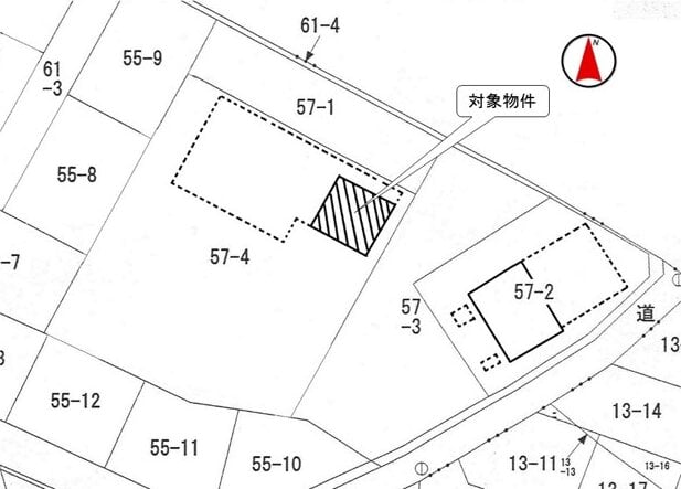 2. 当該件外土地の東側には、第三者が所有する件外登記建物 (家屋番号57番3) 及びカーポート等の構築物があります。