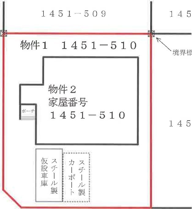 本詳細情報画面の内容については、必ず物件資料3点セット (物件明細書、現況調査報告書及び評価書等)をダウンロードの上、ご確認ください(民事執行法63条2項1号の申出がある場合等があります)。 本システムからダウンロードした「現況調査報告書」及び「評価書」に引用されている写真、資料及び図面は、本システム上は添付されていない場合があります。
