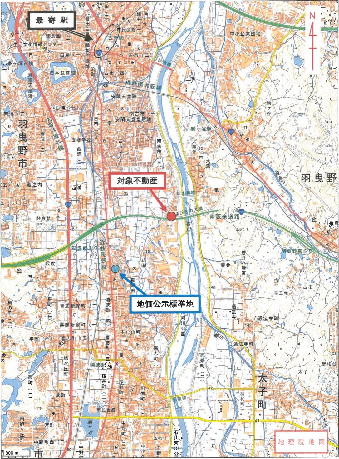 近鉄南大阪線「」駅 南東方 道路距離 約2,500m