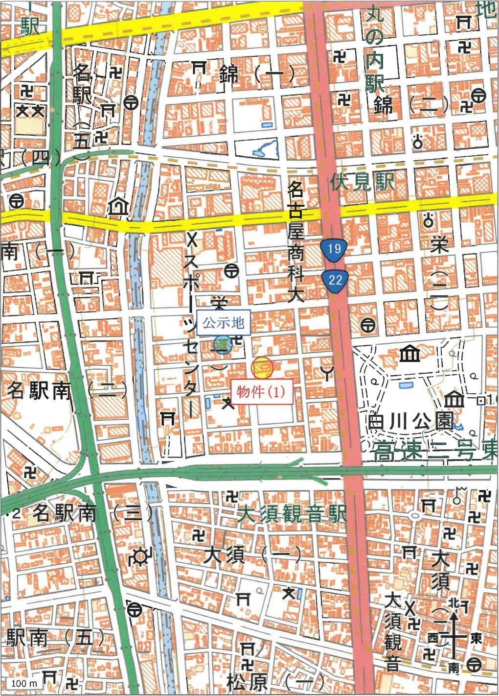 地下鉄鶴舞線「伏見」駅 南西方 道路距離 約500m