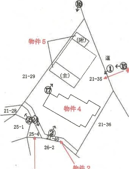 本詳細情報画面の内容については、必ず物件資料3点セット (物件明細書、現況調査報告書及び評価書等)をダウンロードの上、ご確認ください(民事執行法63条2項1号の申出がある場合等があります)。 本システムからダウンロードした「現況調査報告書」及び「評価書」に引用されている写真、資料及び図面は、本システム上は添付されていない場合があります。