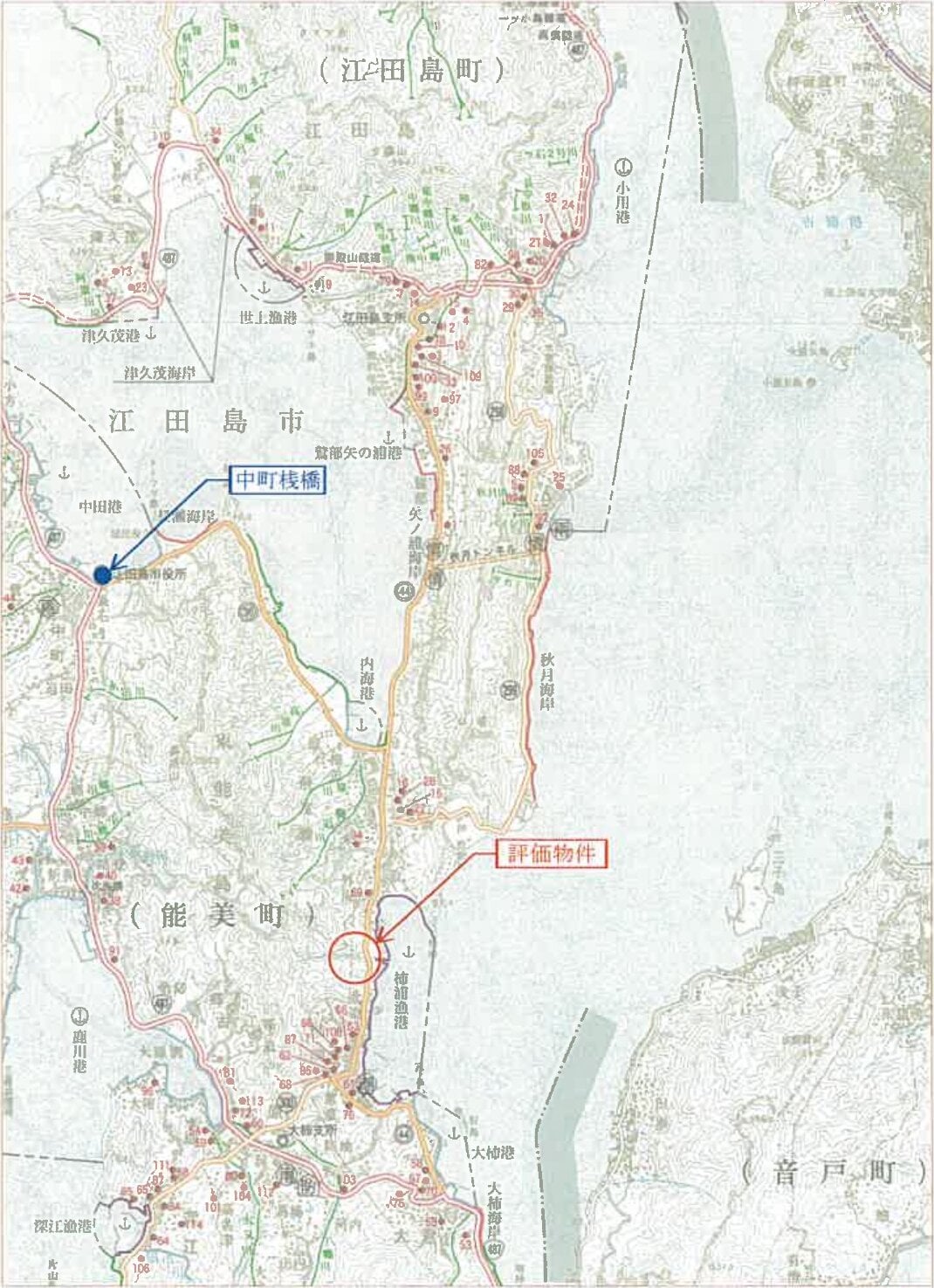 「中町」桟橋 南東方 直線距離 約4.5km