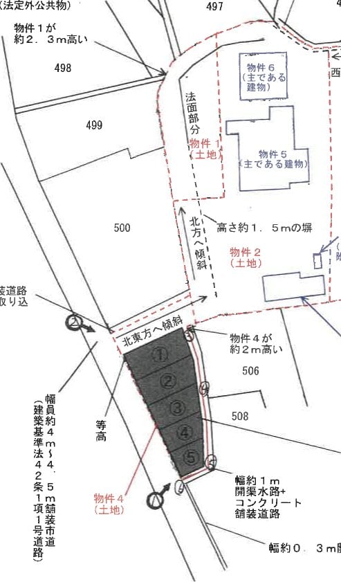 本詳細情報画面の内容については、必ず物件資料3点セット (物件明細書、現況調査報告書及び評価書等)をダウンロードの上、ご確認ください(民事執行法63条2項1号の申出がある場合等があります)。 本システムからダウンロードした「現況調査報告書」及び「評価書」に引用されている写真、資料及び図面は、本システム上は添付されていない場合があります。