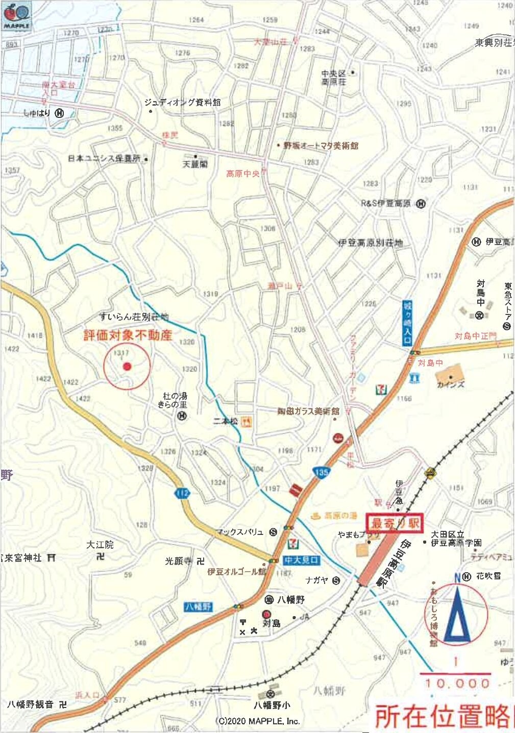 伊豆急行線「」駅 北西方 道路距離 約1.3km