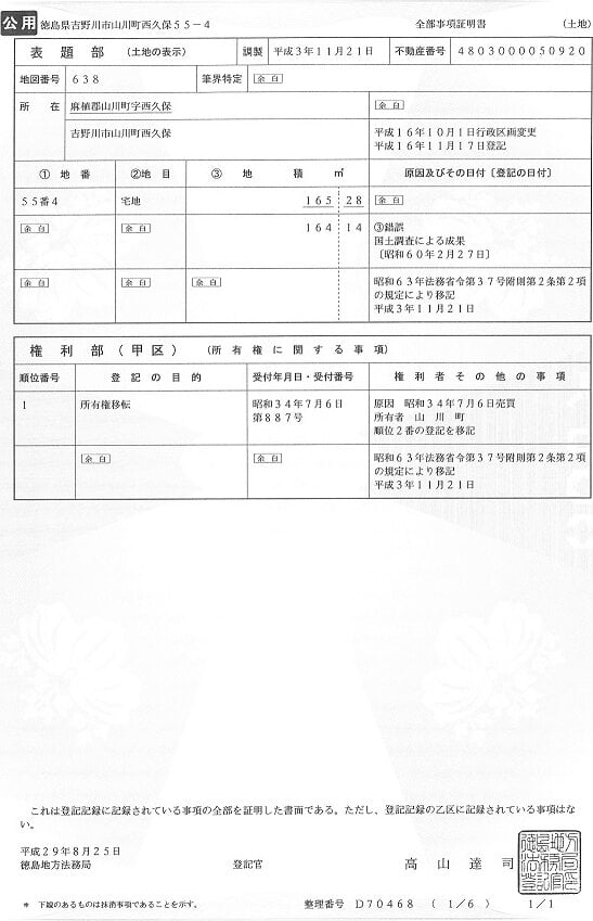 出典:官公庁オークション - 吉野川市山川町西久保 163.67㎡ 宅地:吉野川市の公有財産売却物件詳細