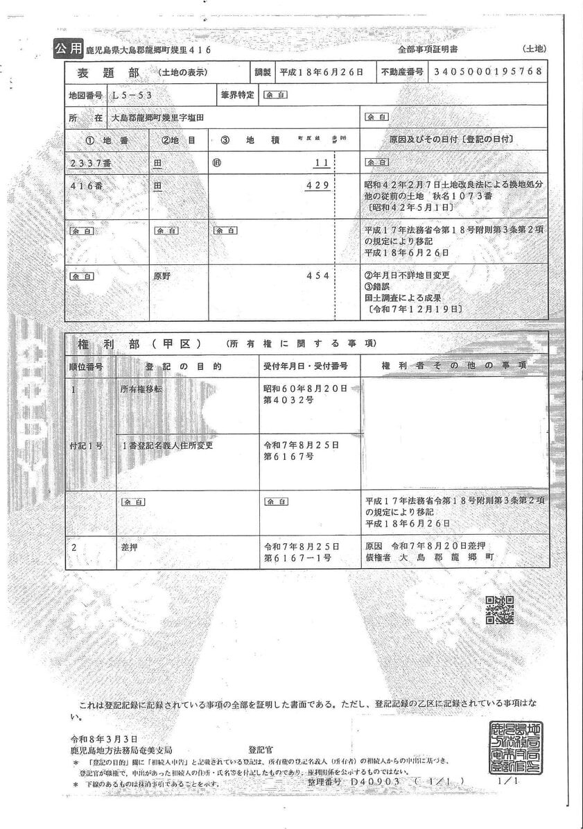出典:官公庁オークション - 【土地】 鹿児島県龍郷町 幾里内の県道近傍地 「原野」1筆:龍郷町のインターネット公売物件詳細