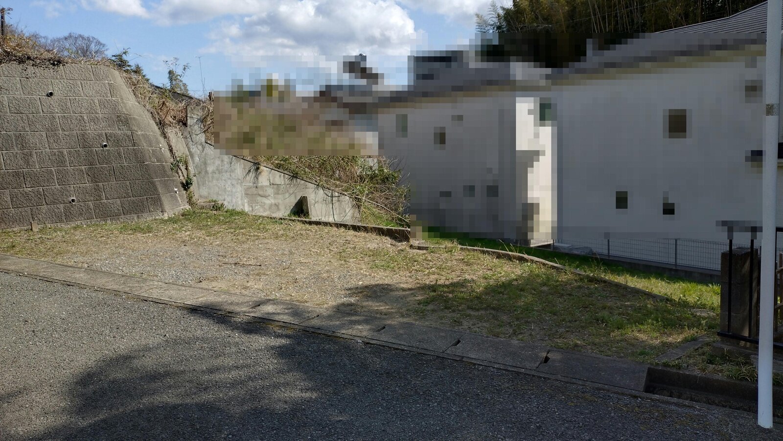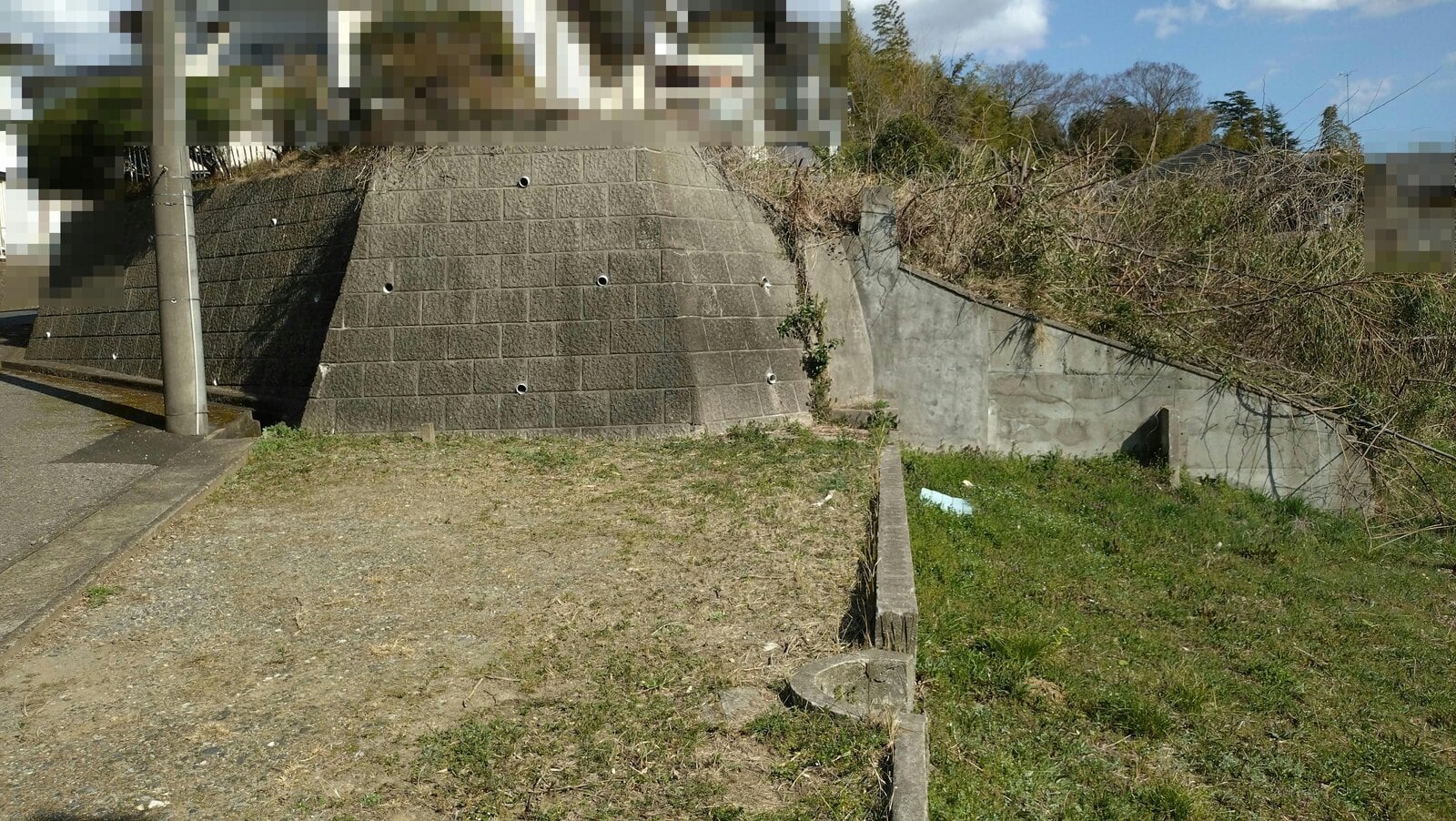 ・敷地内の高低差は約3mであり、南側が低くなっています。北側の約50m²は概ね平坦ですが、残りの部分は南向き斜面となっています。対象地の過半が斜面です。高低差や周辺利用状況を考慮すると、住宅の敷地として利用することは困難であると考えます。平坦部分を「駐車場」や「家庭菜園」として利用することは可能です。