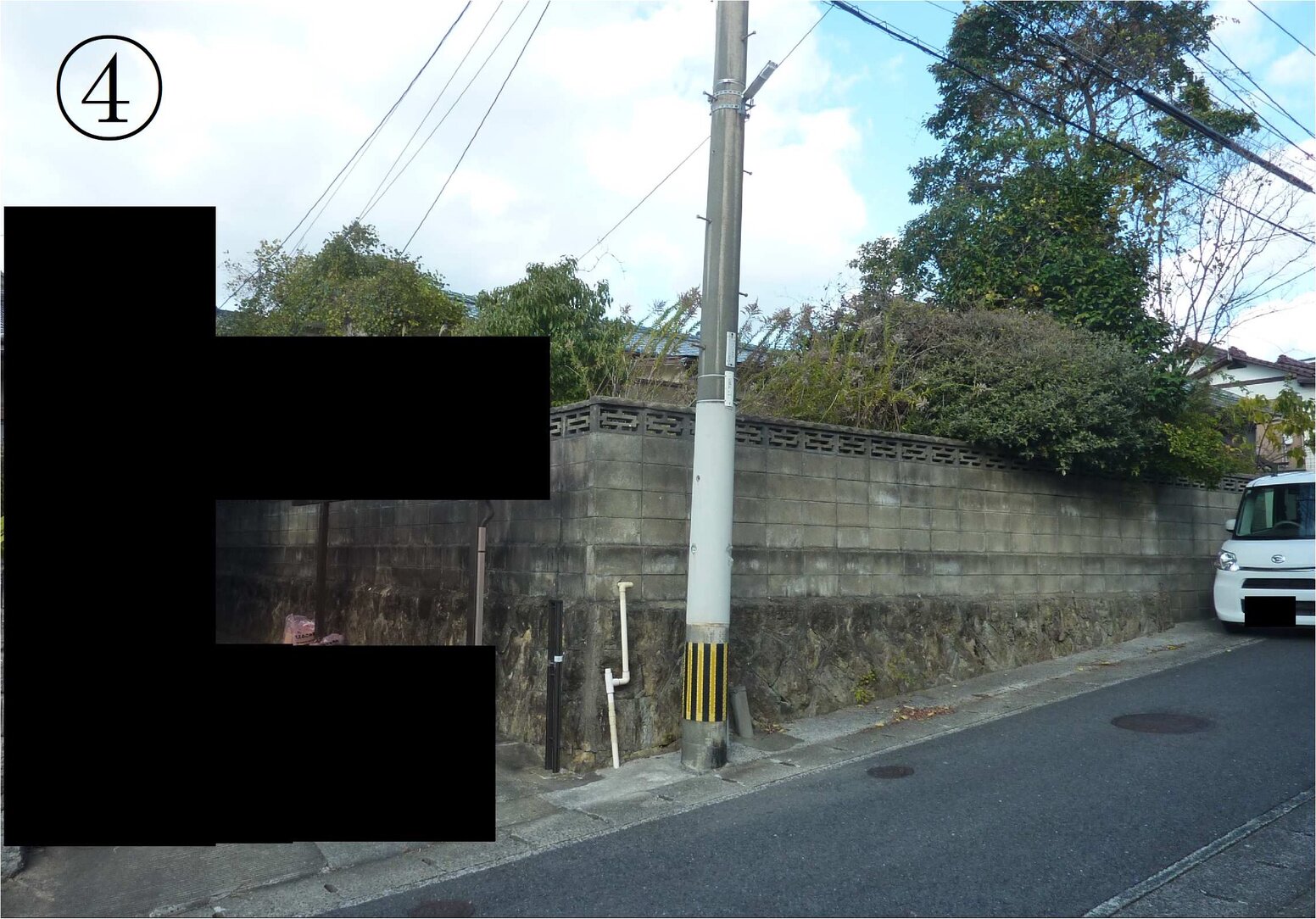 ・隣地との境界確定は、買受人と隣地所有者との間で行ってください。また、接面道路 (私道) の利用については道路所有者とそれぞれ協議してください。中間市は一切関与いたしません。