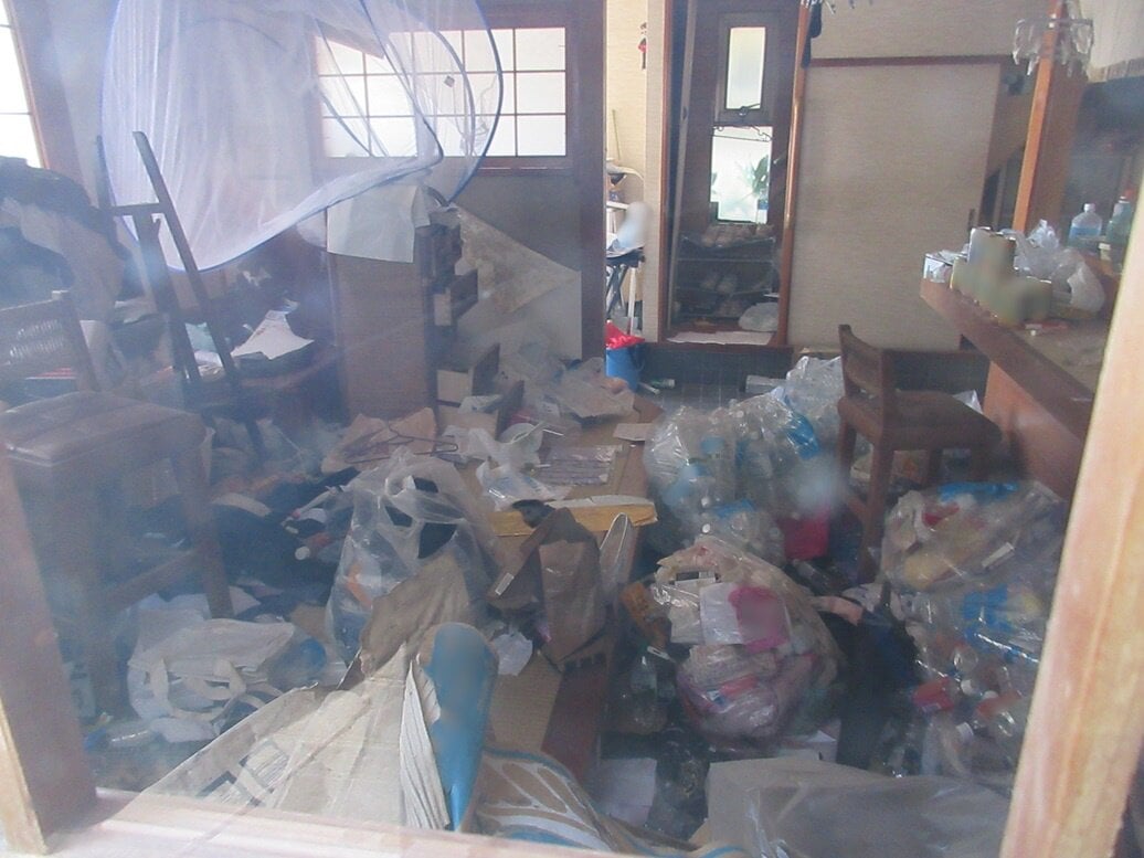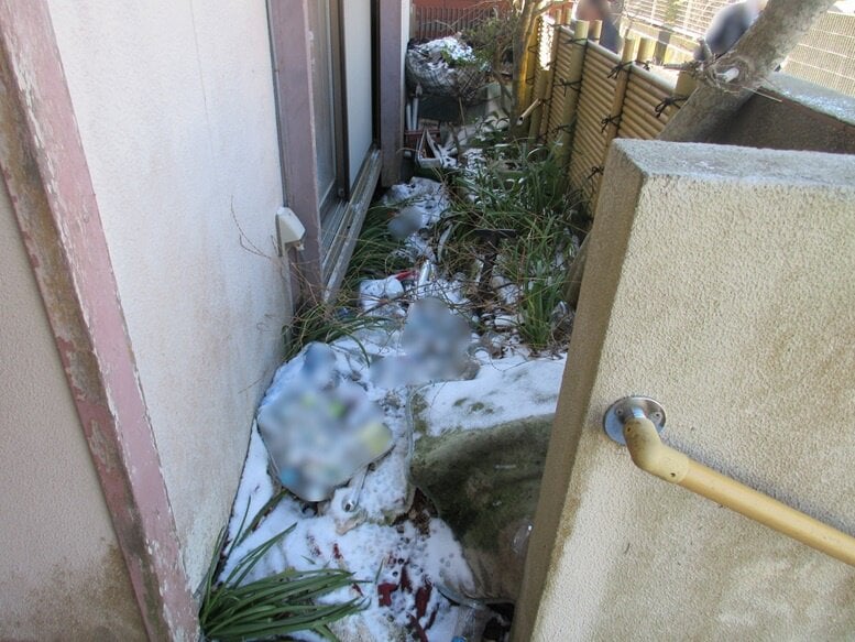 3. 内覧調査が実施できなかったため維持管理の状態は不詳ですが、窓越しの観察によると、玄関や居室内には郵便物、ペットボトルや空き缶等のゴミ等が堆積しています。