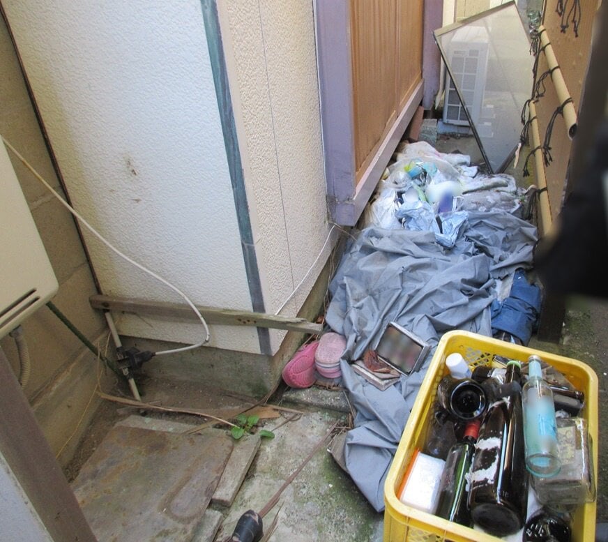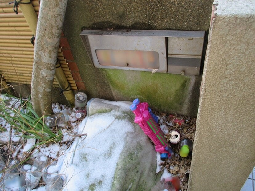 ・敷地内や建物内にペットボトルや酒瓶等が散乱しています。